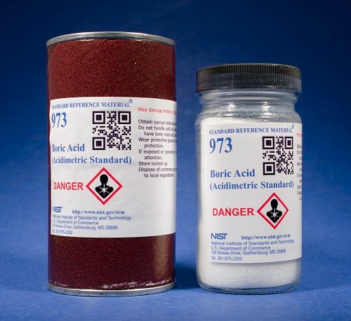 SRM 973 硼酸被認(rèn)證為已知測定的化學(xué)品,旨在用作主要的酸度標(biāo)準(zhǔn)。 NIST SRM 973 - 硼酸 由裝在 100 g 瓶中的高純度硼酸 (H3BO3) 組成。