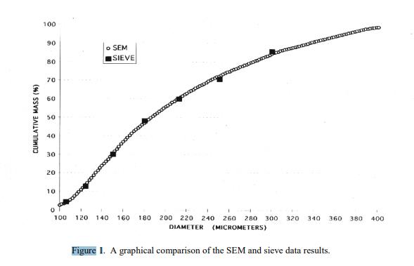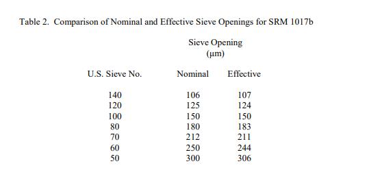 表 2 中提供了標(biāo)稱和有效篩孔的信息值,用于確定瓶子之間的變異性以及與 SEM 結(jié)果進(jìn)行比較。圖 1 是 SEM 和篩分結(jié)果的圖形比較。信息值被認(rèn)為是 SRM 用戶感興趣的值,但沒有足夠的信息來評估與該值相關(guān)的不確定性,或者只進(jìn)行了有限數(shù)量的分析 [1]。信息值不能用于建立計(jì)量溯源性。